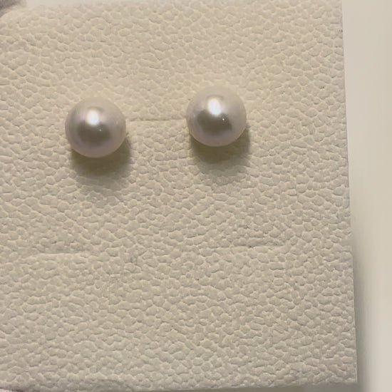 Elegant cultured freshwater pearl stud earrings, set in 925 Silver. Each pearl boasts a smooth, lustrous surface that catches the light beautifully, creating a timeless, sophisticated look perfect for everyday wear or special occasions.”