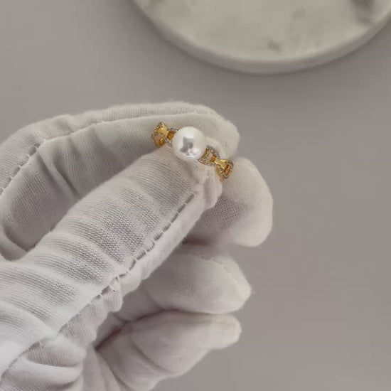 These Akoya pearl studs glow with a rare soft pink overtone and signature mirror-like luster. A delicate crown of sparkling stones adds refined elegance, making them perfect for formal and everyday wear.