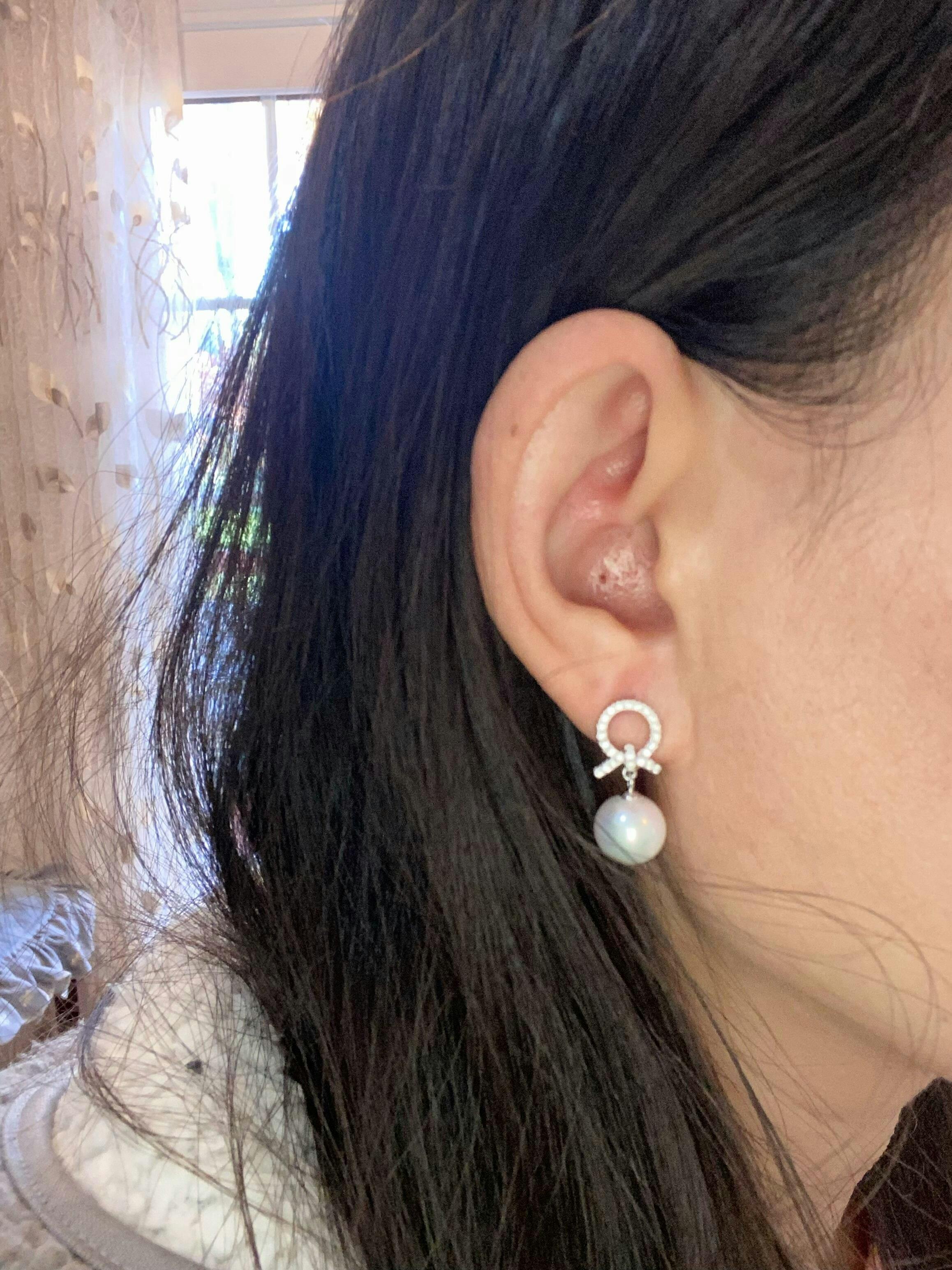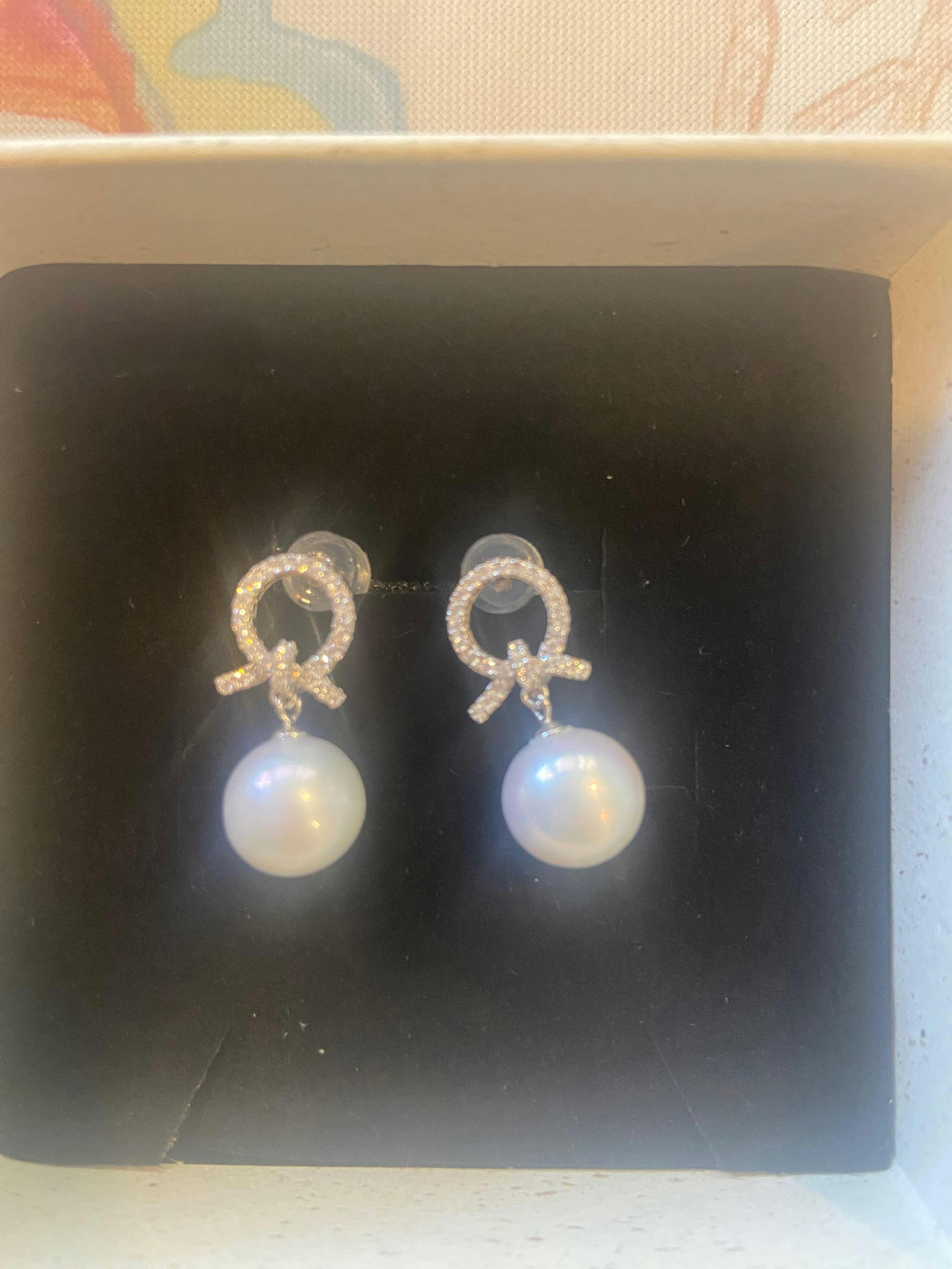 No edits, no filters — just truth and light.Graceful pearl drop earrings featuring luminous round pearls suspended from sparkling zircon-studded knots. A refined design that blends timeless charm with modern shine.