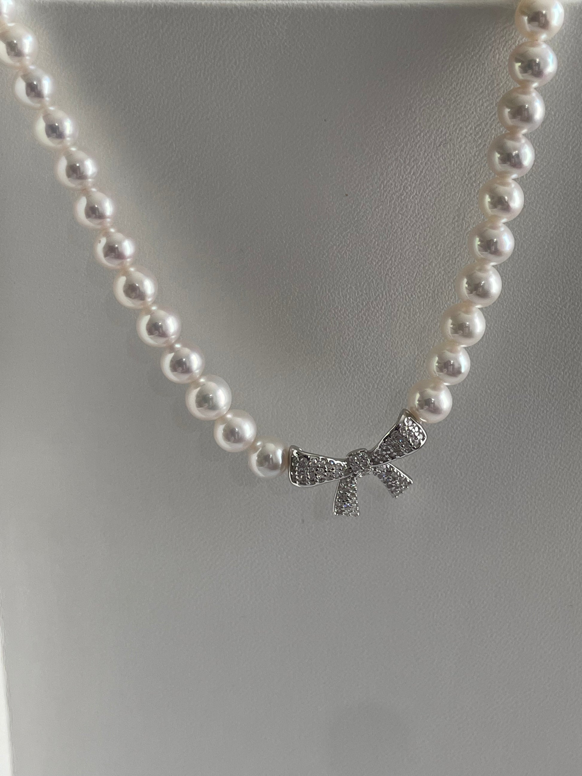 No edits, no filters — just truth and light. A classic freshwater pearl necklace accented with a sparkling 925 silver bow charm, blending timeless elegance with a playful touch.